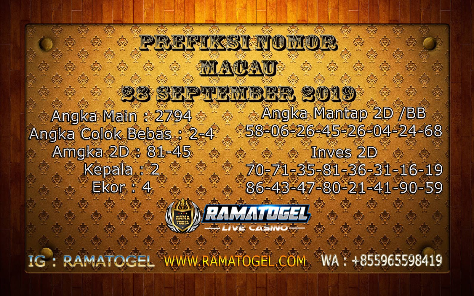 Prediksi Togel Singapore Hongkong Sidney Macau Prediksi Nomor Jitu ToTo Macau 28 SEPTEMBER 2019